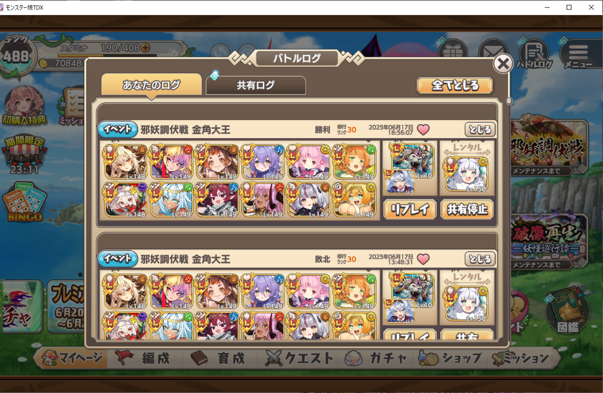 私にしては珍しく、こっそりリプレイ動画をフレンドに共有してます💡